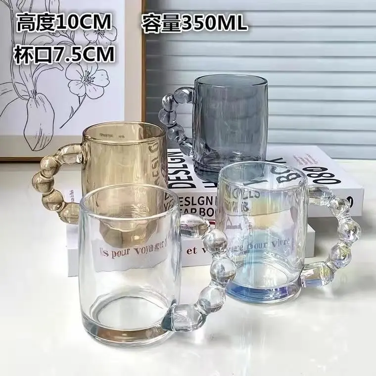 Glass Heat-resistant Water Cup Sugar Gourd Bead Handle Mark Cup Transparent Water Cup Creative Mugs Cute Coffee Mugs and Cups